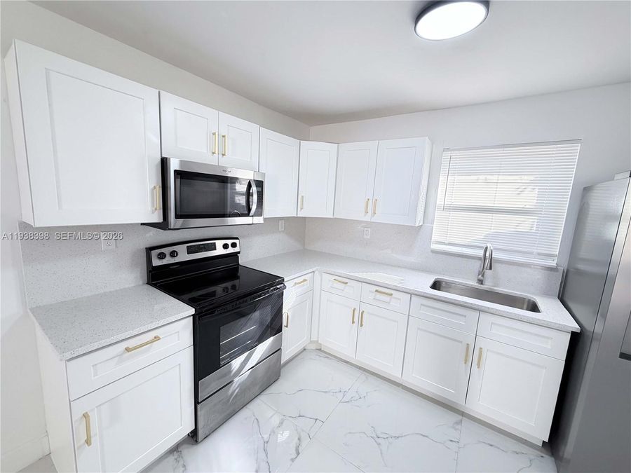 Available NowCompletely renovated rental in the heart of Hallandale. This bright and modern home features brand-new marble-style tile flooring throughout, impact windows, and a fully updated interior. The new kitchen is equipped with all-new stainless steel appliances, modern cabinetry, and updated finishes. The bathroom has been fully renovated with a contemporary design. Fresh paint, updated lighting, and an open living/dining layout provide excellent natural light and functionality. No Pets No Smoking 680+ credit preferred utilities not included, first and last to move in.